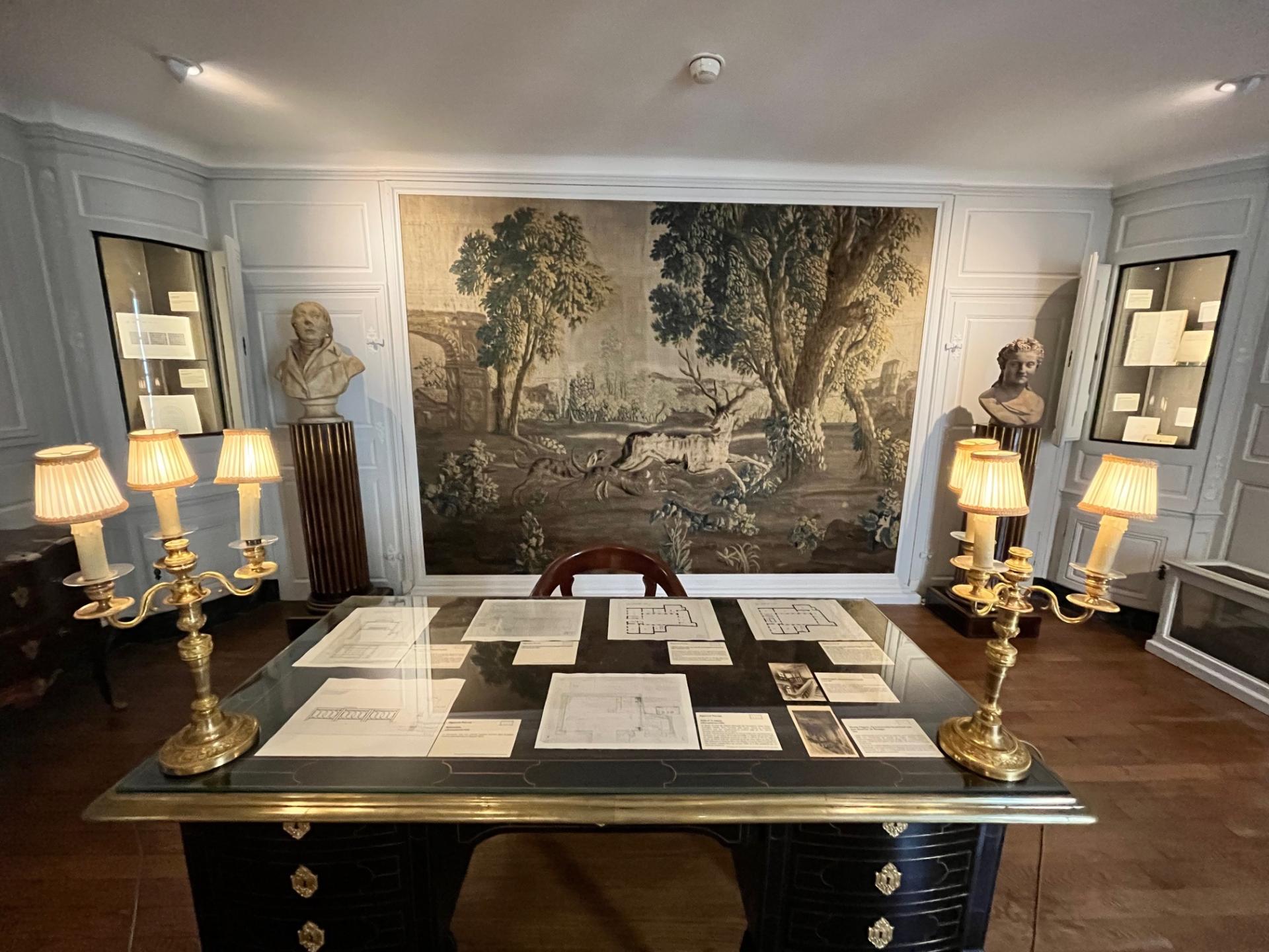 Vue du bureau avec les documents liés à l'intervention d'Auguste Perret en 1930-1932 © Musée national Magnin / Sophie Harent