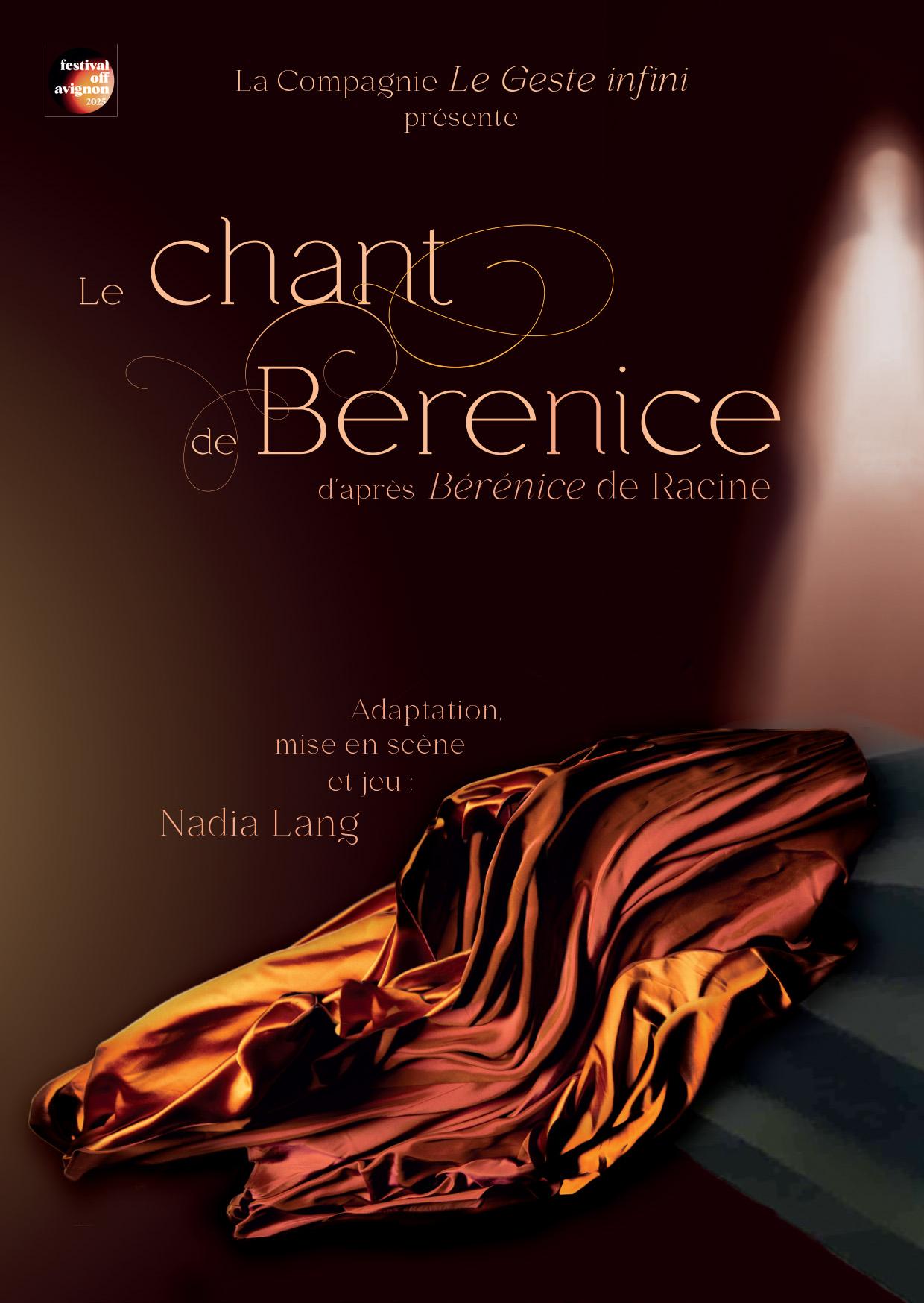 Inspiré de la pièce de Racine, Le Chant de Bérénice est la dernière création de la compagnie Le Geste Infini. Parcourant en une journée tous les âges de l'amour, ce spectacle met en exergue l’évolution psychologique et spirituelle spectaculaire du personnage de Bérénice.